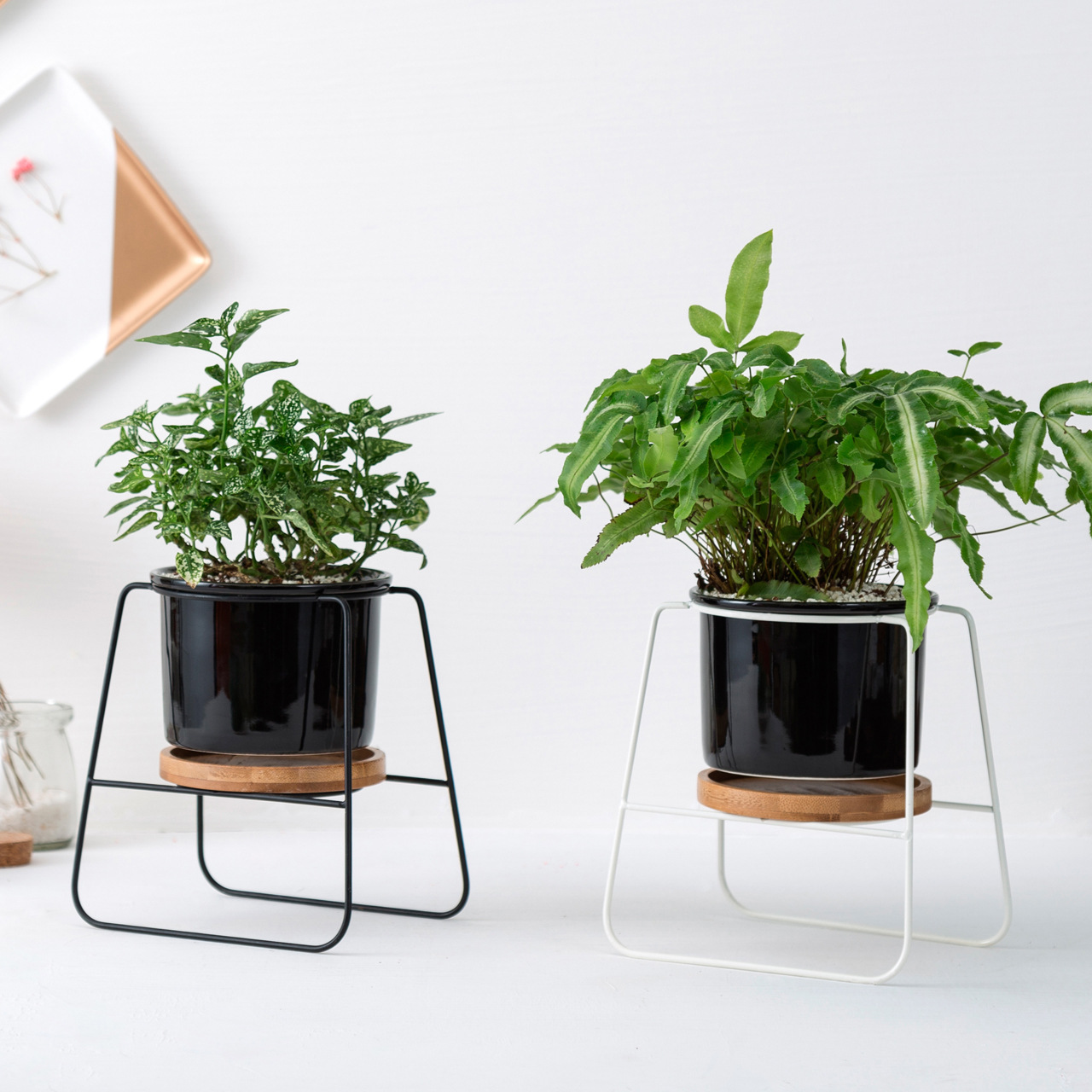 Transform your living space with our stunning Geometric Flower Rack and Ceramic Pot Set. This elegant combination of a sleek iron frame and stylish ceramic pot is perfect for showcasing your favorite succulent plants and bringing a touch of nature indoors.